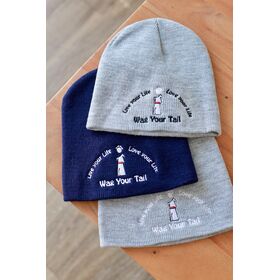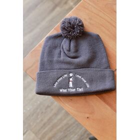 Wag Your Tail Grey Beanie with Black Lettering
