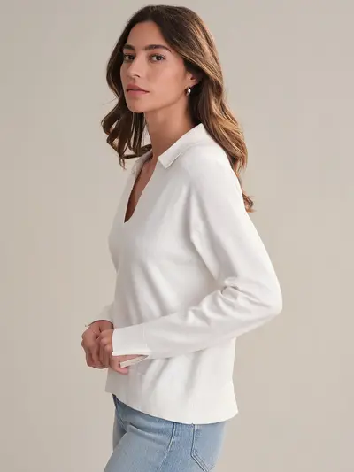Introducing Maddi: the perfect lightweight pullover for any season. Crafted with a classic Johnny collar and V-neck, this pullover is made of a breathable and lightweight fabric with ribbed hem for an outstanding fit. Quality and style combined.
