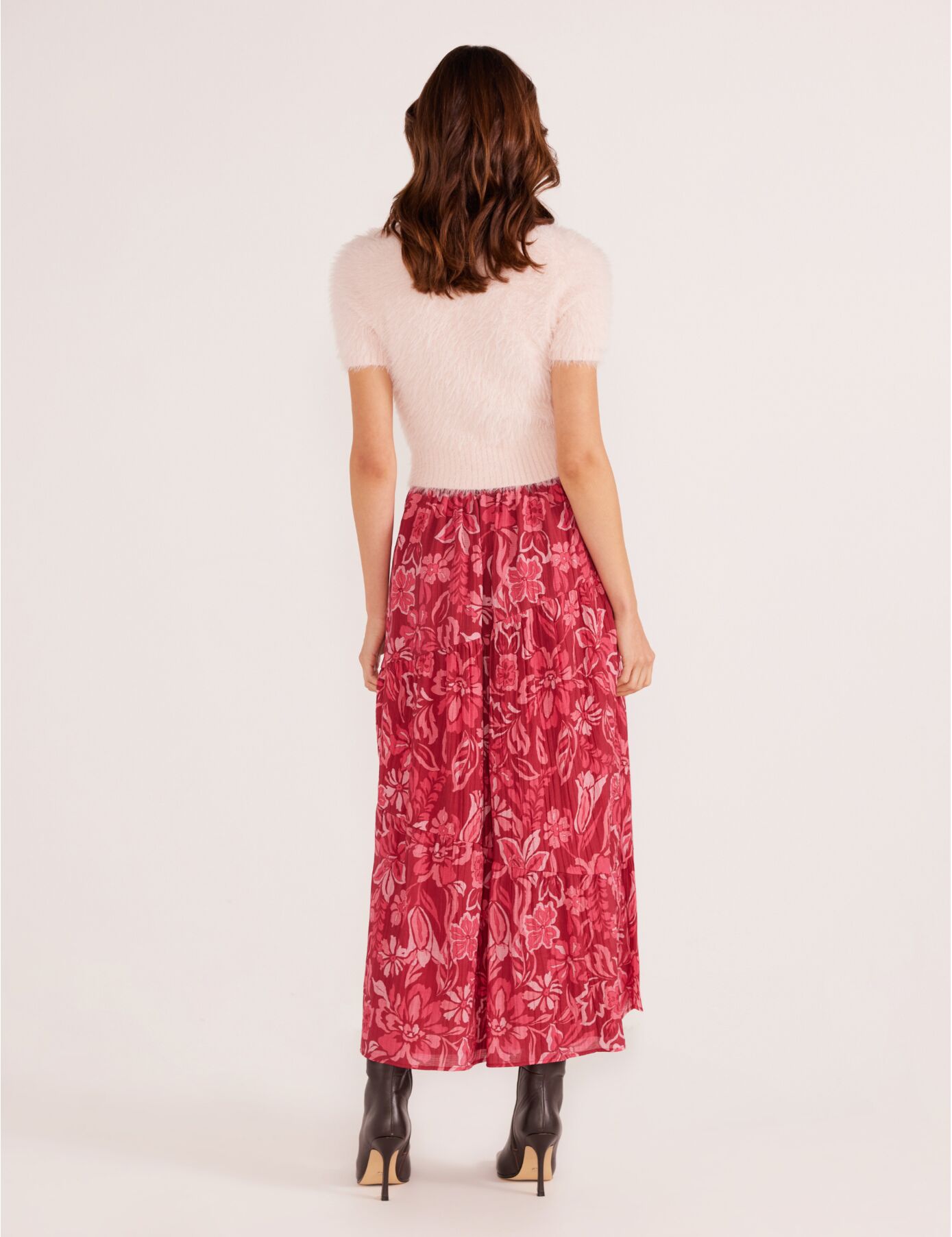• Exclusive print; tiered skirt; front split