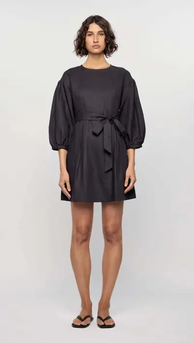 Short, sweet and softly structured - the Rhea Mini Dress is your throw-on-and-go essential with just the right amount of polish. Crafted in a breathable linen-viscose blend, it features voluminous 3/4 sleeves, a waist tie for definition and a flattering A-line silhouette.