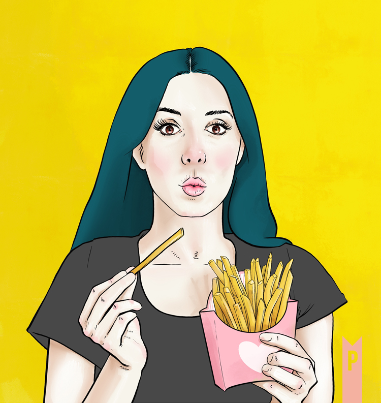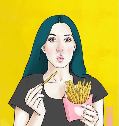 This print, “Life is Hard, French Fries Are Delicious”, features a girl savoring fries from a pink box adorned with a heart - a subtle nod to love and comfort. The caption is a whimsical non sequitur, reminding us that amidst life’s chaos and complications, sometimes it’s the simple pleasures - like crispy fries - that keep us going. A celebration of comfort food, small joys, and finding delight in the ordinary.