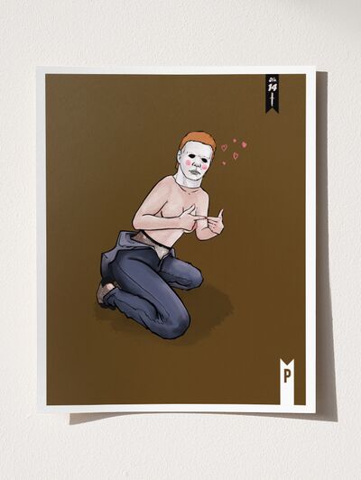 Available in multiple sizes, ready to frame—because even Michael Myers has a soft side.