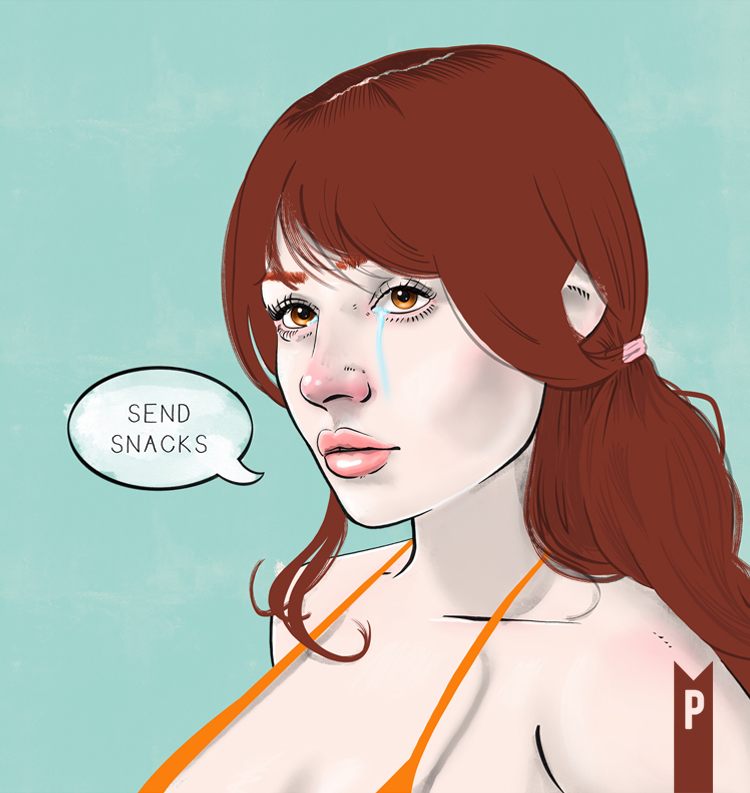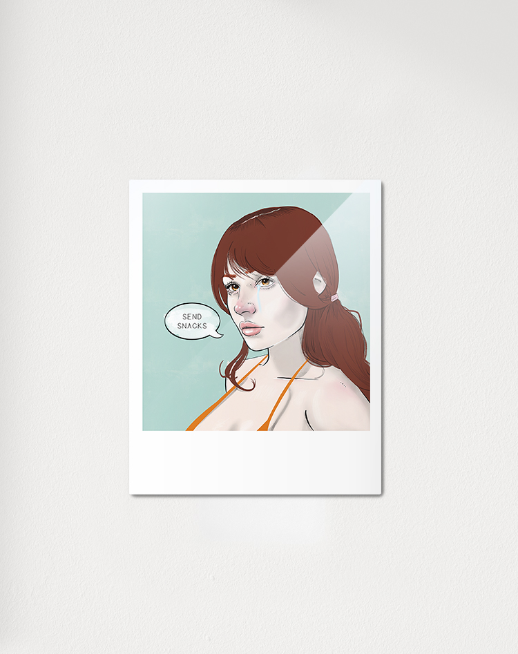 This print, titled “Send Snacks”, depicts a tearful girl in a raw, vulnerable moment - crying, yet still managing to plead for snacks. The juxtaposition of sorrow and humor makes it both relatable and tongue-in-cheek, like a candid snapshot pulled from life’s more dramatic days.
