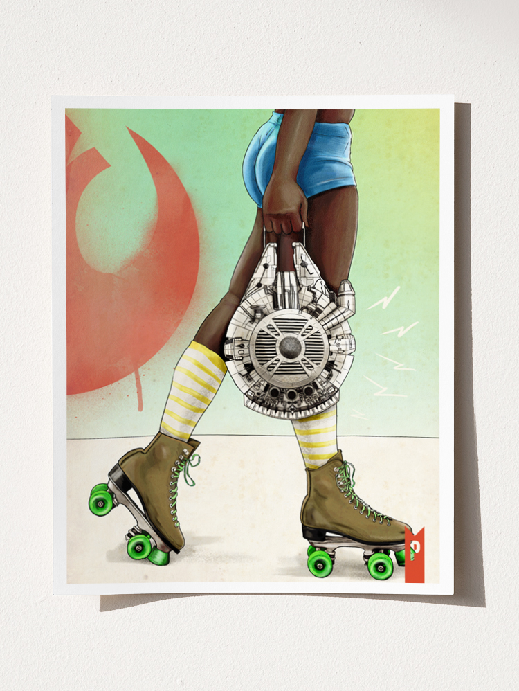 Printed with archival-quality inks on premium paper, these vibrant, high-energy prints are a perfect mash-up of punk attitude, derby grit, and Star Wars nostalgia. Display them side by side as a set, or let each stand alone as a statement piece.