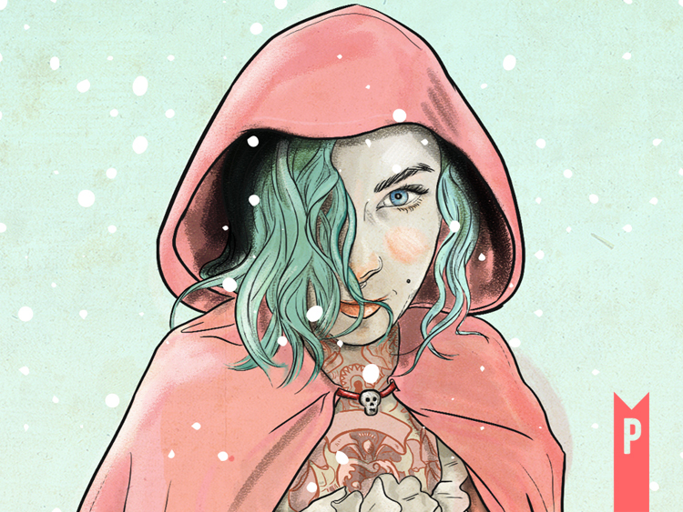 Once upon a time gets a rebellious makeover in Waiting for the Wolf. This artwork reimagines Little Red Riding Hood not as an innocent wanderer, but as a punk rock girlie - inked, pinked, and brimming with attitude. She isn’t afraid of the dark woods or the wolf; in fact, she’s waiting for him.