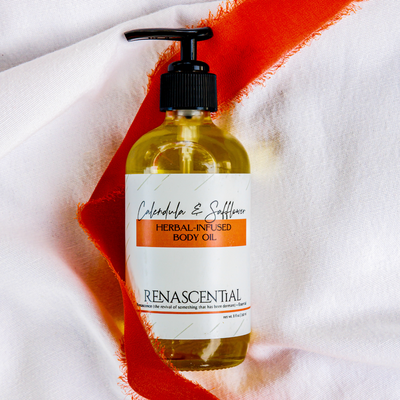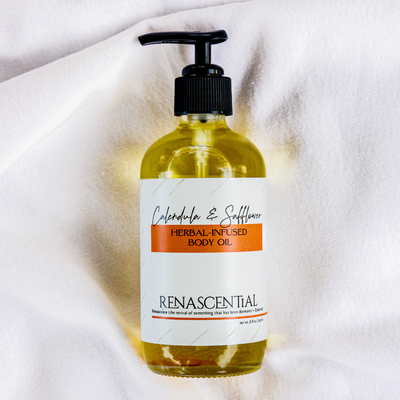 Tired of dry, flaky, itchy skin? Our herbal-infused body oil features a beautiful mixture of mildly scented oils that are sure to enhance your nightly self-care routine. Handmade from 100% natural ingredients, the oil is easily absorbed into the skin without clogging pores and works to enhance skin health.