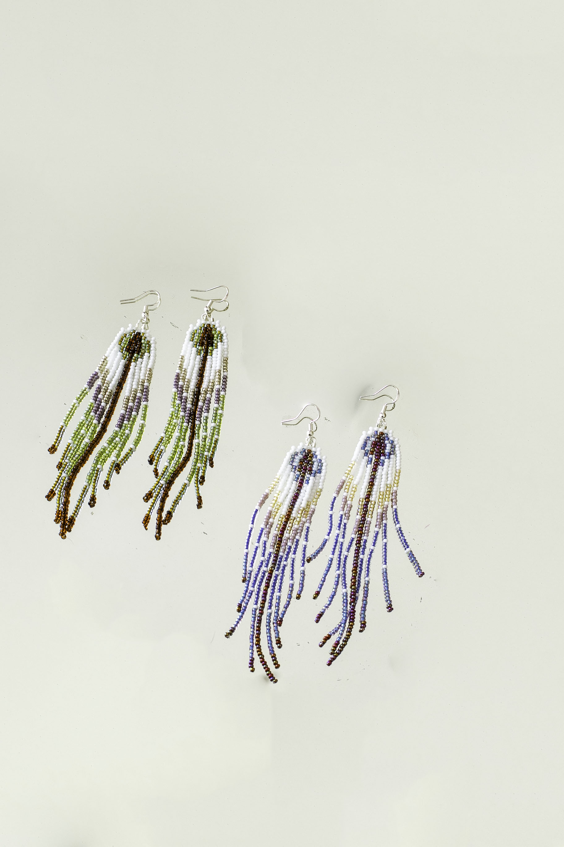 Inspired by woodland landscapes, these earrings capture the textures of moss and trees in beadwork. A whimsical, earthy piece for anyone who carries the forest with them.