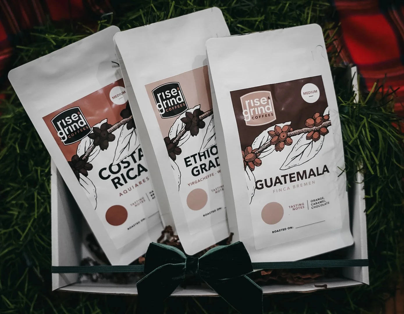 Stocking Stuffer set includes Costa Rica, Guatemala, and Ethiopia.