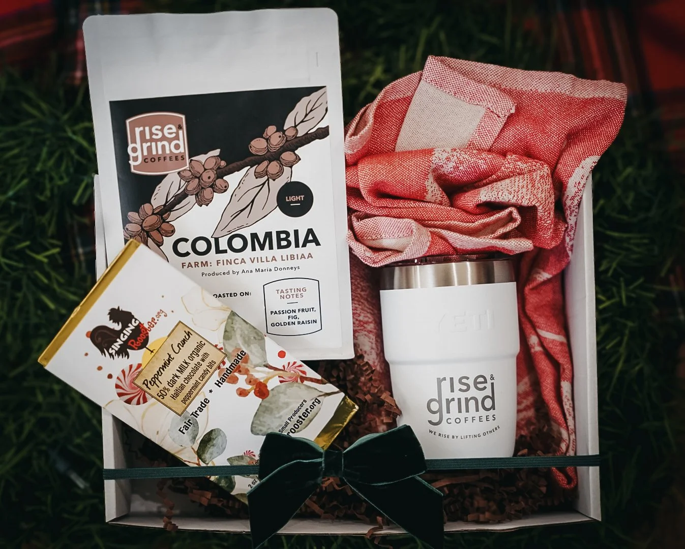 Celebrate the season with our Sip + Savor Gift Set, the perfect holiday gift for coffee lovers. This thoughtfully curated set includes your choice of specialty coffee roast, a rich Haitian chocolate bar, a tea towel, and our 17oz ceramic mug—all ready to gift. Ideal for those who love to sip and savor their coffee, this set makes holiday gifting effortless and memorable. Treat someone special (or yourself!) to a cozy, artisan experience this season.