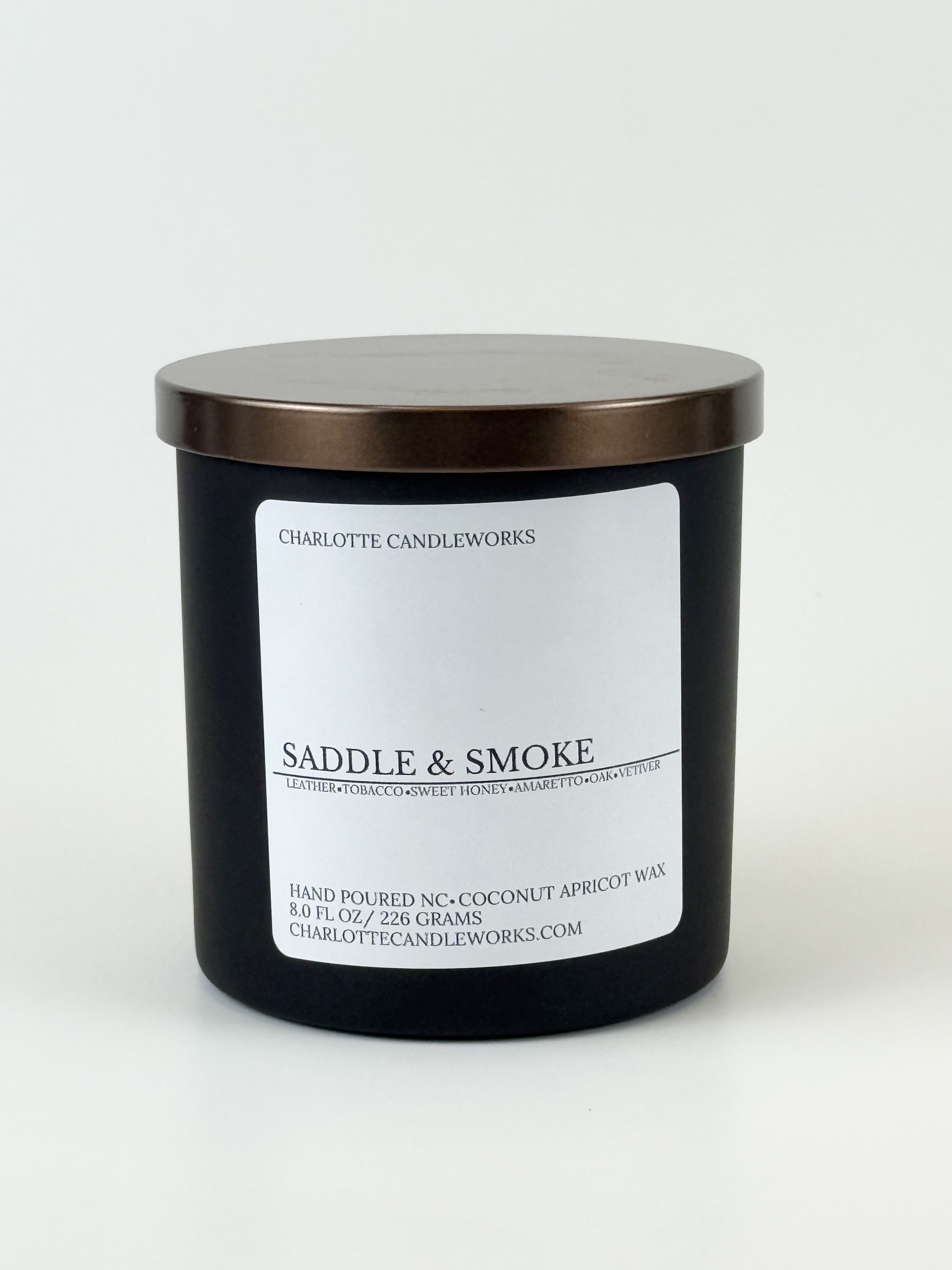 Saddle and Smoke is a bold, luxurious blend of Saffron, Amaretto, and Honey, with earthy Tobacco Leaves and rugged Leather. Warm Amber and sturdy Oak add depth, creating a rich, smoky atmosphere that evokes comfort and sophistication.