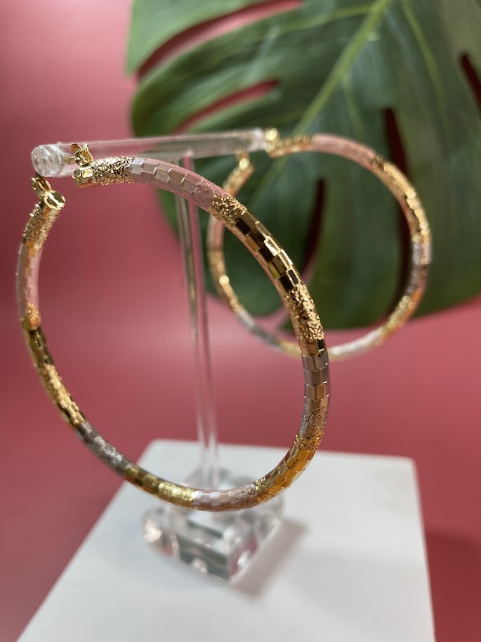 Transform your look with our Kingdom Hoop Earrings. Made of lightweight gold and silver, these oversized hoops exude elegance and sophistication. The exclusive pink hue adds a touch of femininity, while the secure clasp ensures all-day comfort. Upgrade your accessory game with these luxurious and versatile earrings.