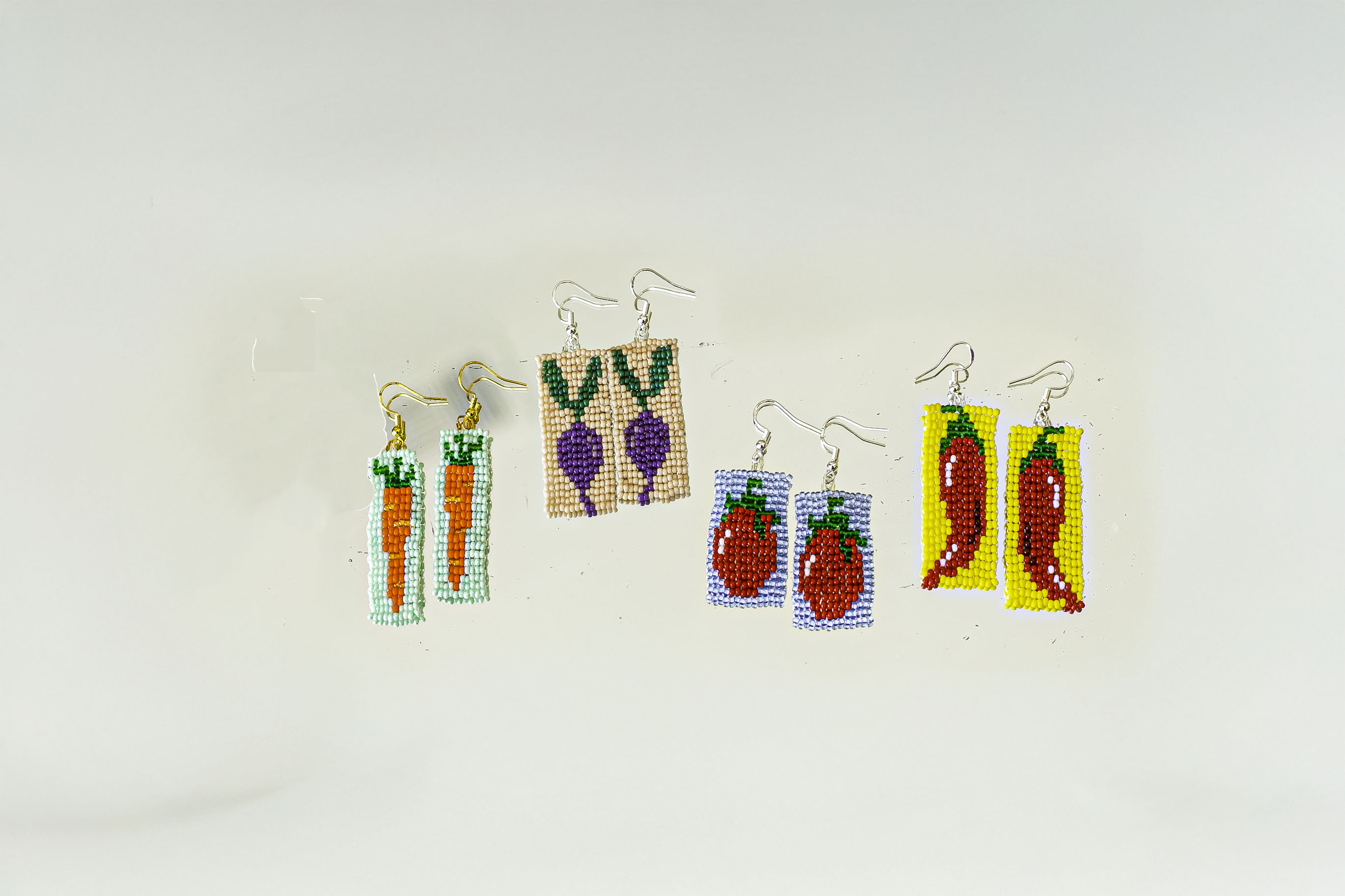A celebration of the garden you can wear! Hand-made beaded veggie earrings bring a touch of fun and color to your style. Perfect for gardeners, foodies, or anyone who loves unique statement jewelry. Choose between carrots, beets, tomatoes, or peppers!
