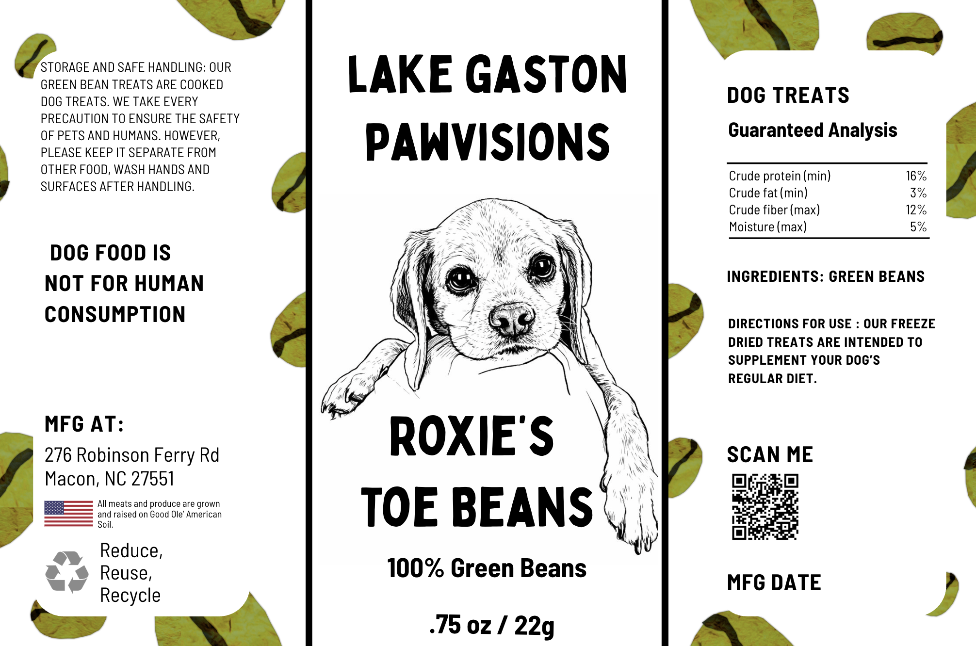 - Single ingredient treats, 100% green beans